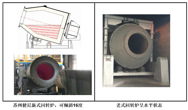 优点1:多边形的炉型结构,回收率相比传统回转炉高10-15%,并且作业强度极大减轻